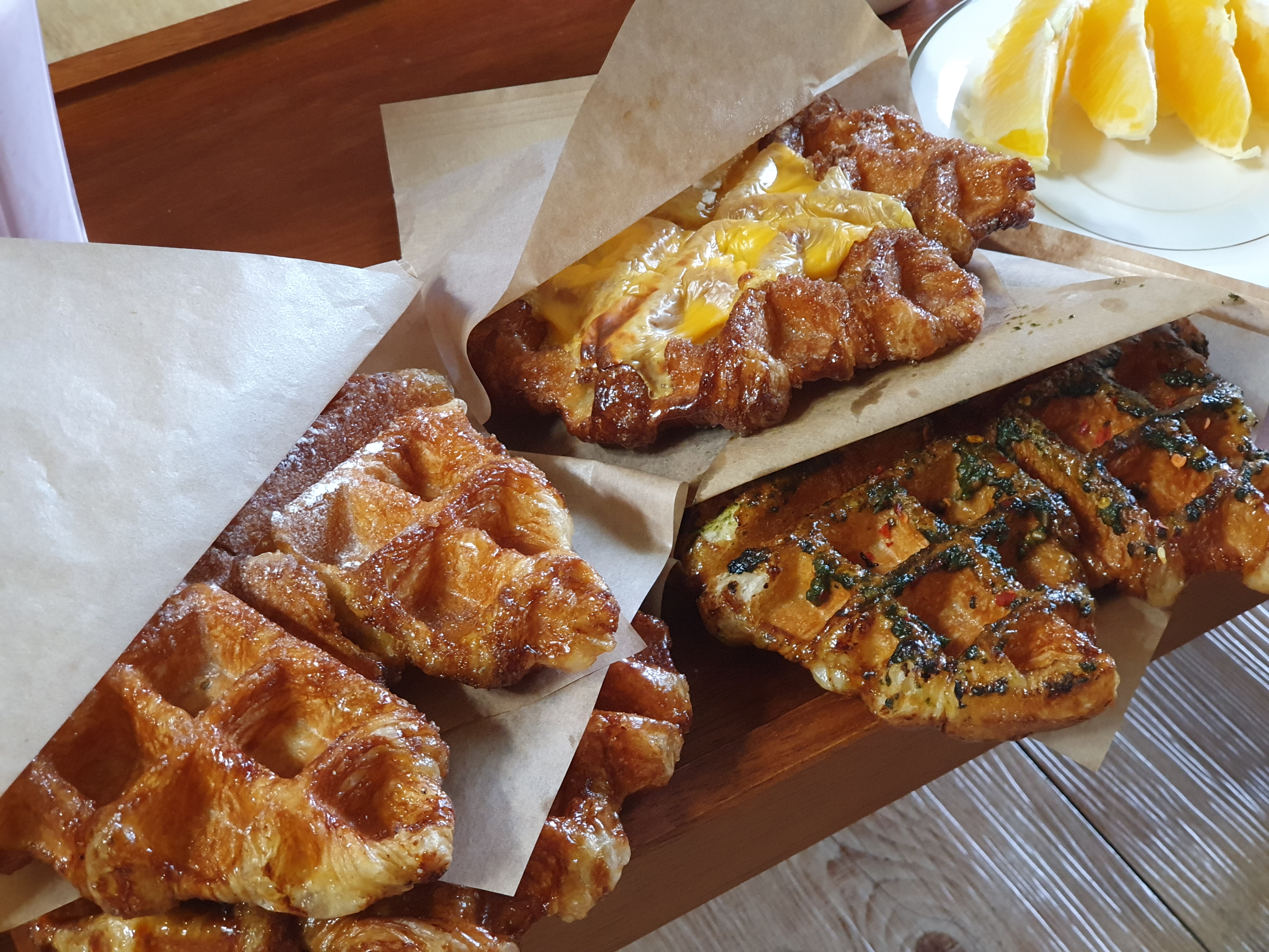 크로플은 오리지널,치즈,바질 있었던거같아요. 그리고 옆에 발라먹을 크림치즈같은게 있는데 전 크로플만 샀어요.